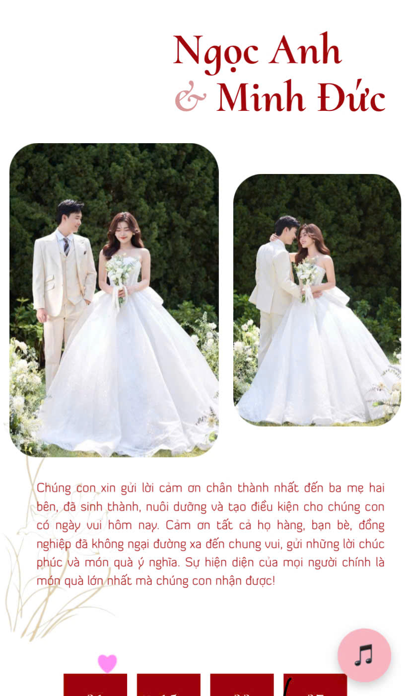 Giao diện hiện đại, dễ dùng, có nhiều hiệu ứng và âm nhạc rất cảm xúc. Nhìn thiệp thôi đã thấy không khí hạnh phúc rồi