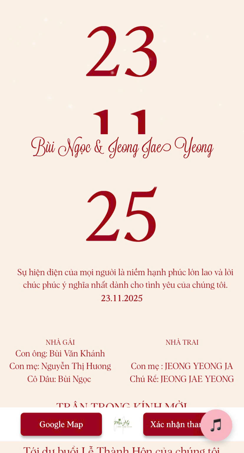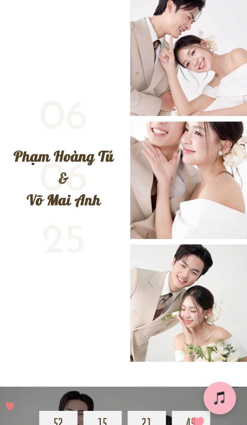 Mộc Hỷ là thương hiệu thiệp cưới online mang phong cách tối giản, tinh tế và đậm cảm xúc, được tạo ra với mong muốn giúp các cặp đôi lưu giữ ngày trọng đại theo cách ý nghĩa và hiện đại nhất. Mỗi tấm thiệp tại Mộc Hỷ không chỉ là một lời mời, mà còn là câu chuyện tình yêu được kể bằng hình ảnh, âm nhạc và kỷ niệm. Chúng tôi tin rằng, một tấm thiệp cưới đẹp không chỉ cần thiết kế ấn tượng, mà còn phải chạm được đến cảm xúc của người gửi và người nhận. Với sự chăm chút trong từng chi tiết, Mộc Hỷ mang đến những mẫu thiệp dễ chia sẻ, mang đậm dấu ấn cá nhân và phù hợp với nhiều phong cách khác nhau. Mộc Hỷ không chỉ tạo nên thiệp cưới, mà còn góp phần lan tỏa yêu thương và lưu giữ kỷ niệm, để ngày cưới không chỉ diễn ra, mà còn được nhớ mãi.