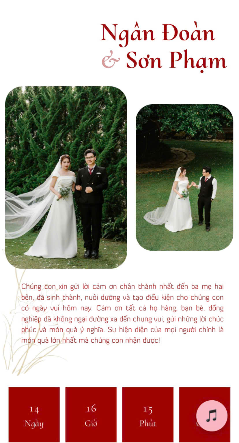 Mình thích nhất là sự tiện lợi, chỉ cần gửi link là người thân có thể xem đầy đủ thông tin, bản đồ, lời chúc và cả video cưới